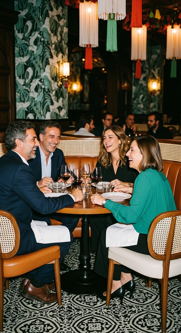 Llegas a un restaurante a cenar con 3 personas seleccionadas para ti por nuestro algoritmo. Todos son muy ligeros. La conversación fluye de inmediato. Tienen los mismos hobbies. Sus historias son súper interesantes. No paran de reír. Conectaste en particular con la persona frente a ti. Termina la cena, intercambian Instagram y se verán el próximo viernes.